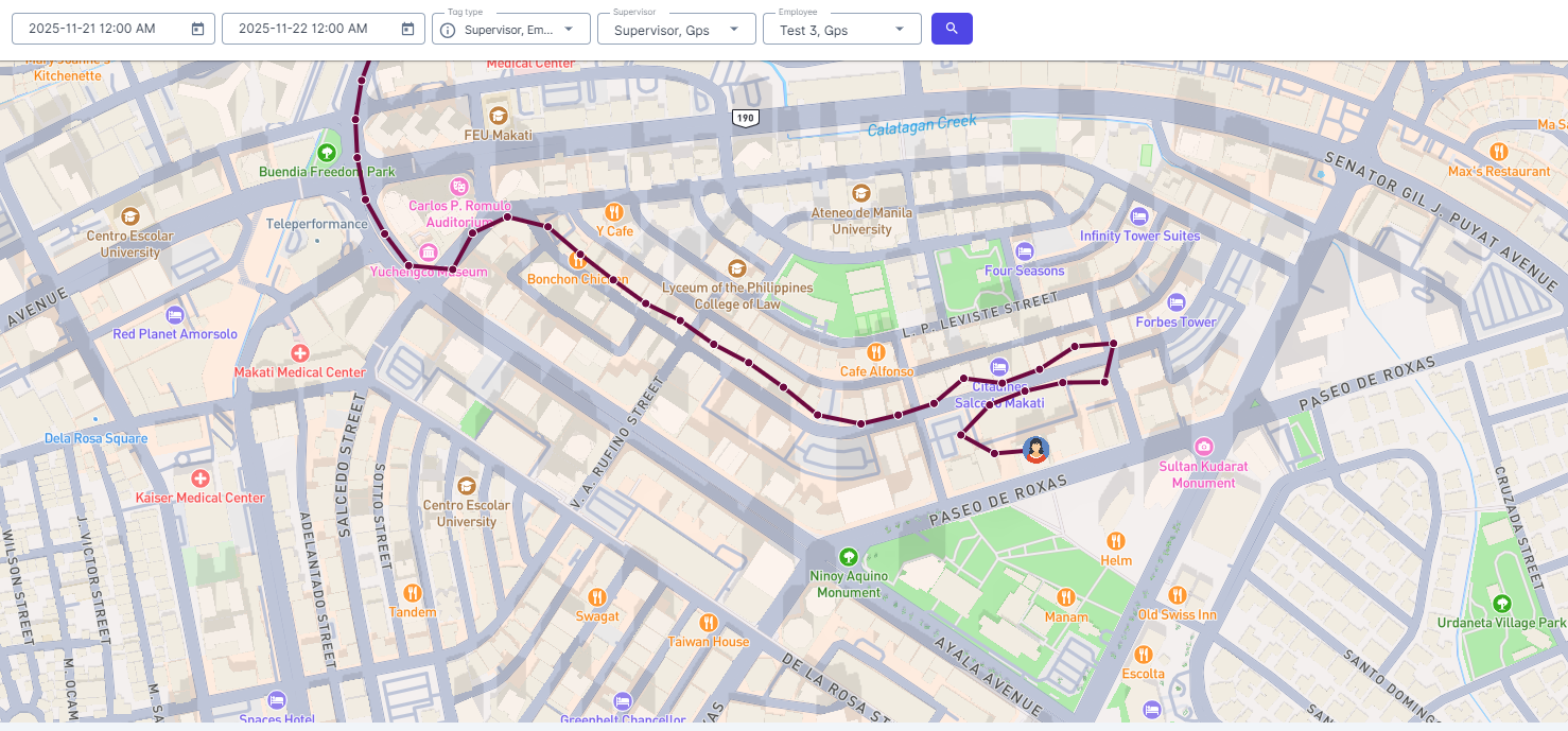 After clicking Search, you will be able to view and track all employee movements within the selected time range.