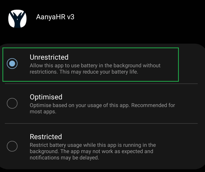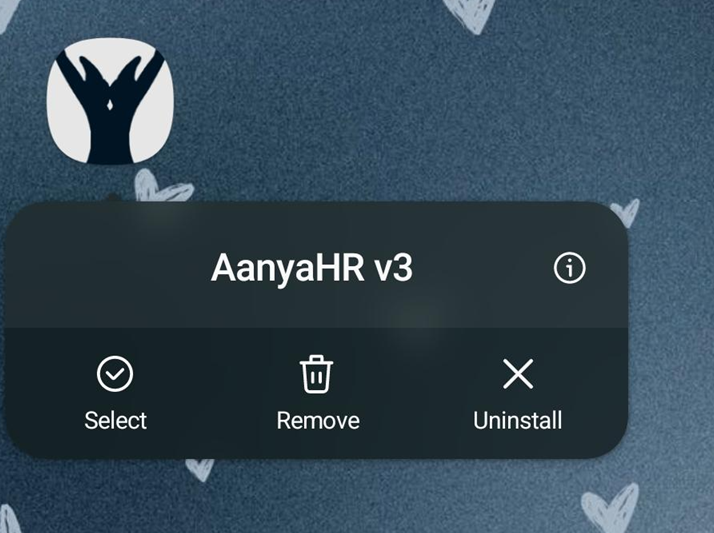 After installing the AanyaHR mobile application, long-press the app icon on your device